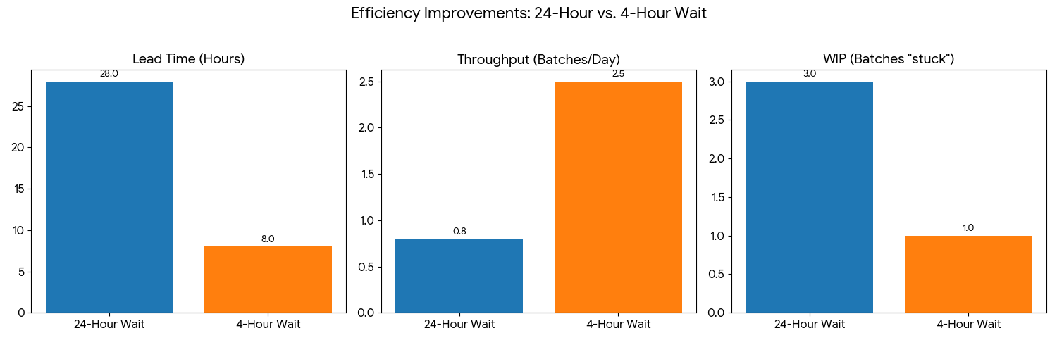 “Look at this,” you point to the 71 % reduction in Lead Time. “By cutting the waste in waiting for the sample to dissolve, we triple our theoretical capacity. Right now, we are paying for 20 hours of samples just sitting on a shelf doing nothing.”